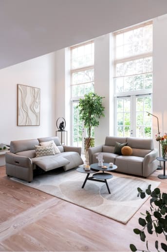 Cette version relax du canapé 3 places Maël est une véritable banque de confort au design intemporel, équipée de pas moins de six moteurs électriques (trois par assise). L’appui-tête, le soutien lombaire et le repose-pieds peuvent être ajustés indépendamment. Une touche permet également de tout remettre en position standard d’un simple geste. Le canapé mesure 200 cm de large et entre 104 cm et 155 cm de profondeur. Le modèle Maël est proposé dans une magnifique sélection de tissus et de cuirs, disponibles dans une large palette de couleurs soigneusement choisies pour mettre le canapé parfaitement en valeur.