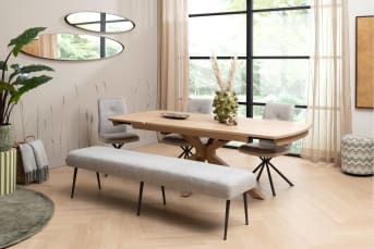 Vous cherchez un banc de salle à manger élégant sans dossier qui s'adapte parfaitement à votre table de salle à manger ? Avec les éléments de la collection Edouard, vous pouvez créer votre propre banc de salle à manger. Optez-vous pour un banc droit ou ajoutez-vous une courbe avec l'élément d'angle ? Ce banc sans dossier de 200 cm est réalisé en tissu Luton de couleur grise et possède des pieds élancés de couleur graphite. Choisissez-vous cette combinaison élégante ou préférez-vous déterminer vous-même le revêtement ? Optez alors pour la variante où vous choisissez vous-même le tissu et la couleur des pieds (graphite, noir ou brun acier). Le banc de salle à manger est confortable dans toutes les versions grâce aux ressorts ensachés intégrés.