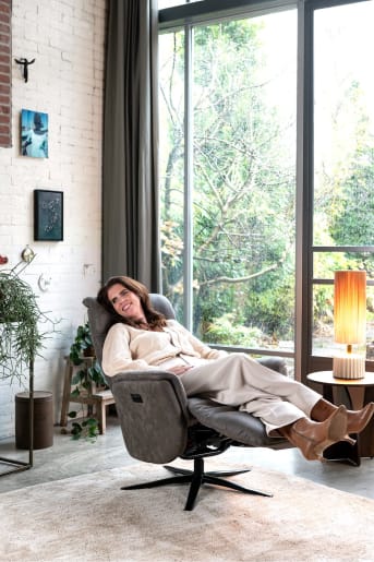 Le fauteuil relax Ferrarini est un magnifique fauteuil qui non seulement offre un confort exceptionnel, mais ajoute également une touche moderne à votre intérieur. Ferrarini repose sur un pied central noir à 5 branches, vous permettant de vous orienter dans toutes les directions. Il est en effet pivotant et dispose d'une fonction de retour automatique pratique. Ce point de mire est réglable électriquement grâce à deux moteurs qui vous permettent de le positionner comme vous le souhaitez. Le fauteuil relax a un appui-tête fixe et est recouvert du beau tissu Oregon, disponible en trois couleurs : beige, désert et lave.